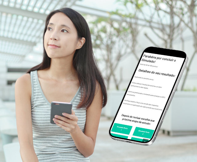 Treine com controle de tempo e se acostume com a pressão do exame oficial, reduzindo o nervosismo no dia da prova.